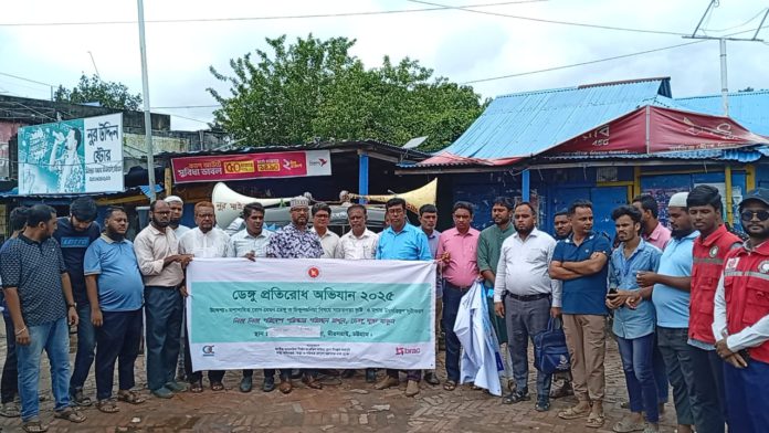 বৃষ্টি উপেক্ষা করে বাজারের দক্ষিণপ্রান্ত থেকে উত্তরপ্রান্তে জনসচেতনতামূলক সভা ও পরিষ্কার পরিচ্ছন্ন অভিযানে প্রায় অর্ধশতেরও বেশি কর্মী অংশ নেয়।