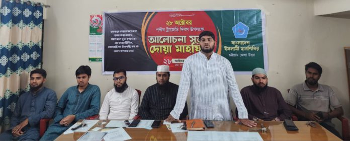 বাংলাদেশ ইসলামী ছাত্রশিবির চট্টগ্রাম উত্তর জেলা শাখার উদ্যোগে ২৮ অক্টোবর পল্টন ট্রাজেডি দিবস উপলক্ষে এক আলোচনা সভা ও দোয়া মাহফিল অনুষ্ঠিত হয়েছে।