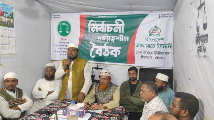 মিরসরাই উপজেলার খৈয়াছরা ইউনিয়নে জামায়াতে ইসলামীর নির্বাচনী দায়িত্বশীল বৈঠক অনুষ্ঠিত হয়েছে। বৈঠকে প্রধান অতিথির বক্তব্য রাখেন চট্টগ্রাম-১ আসনে জামায়াতের প্রার্থী এডভোকেট সাইফুর রহমান। প্রধান বক্তা ছিলেন উপজেলা জামায়াতের আমীর মাওলানা নুরুল কবির।